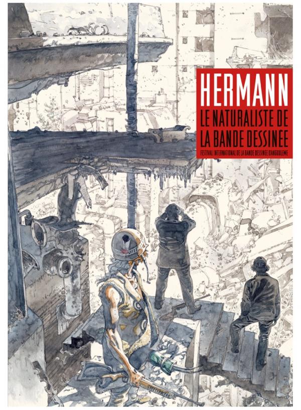 Ce catalogue de 128 pages reprend l’intégralité des textes de l’exposition présentée durant le Festival d’Angoulême, du 26 au 29.01.2017. Il présente plus d’une centaine de reproductions de planches originales, scannées en très haute définition, les témoignages de plusieurs auteurs de bande dessinée, ainsi que de nombreux extraits d’entretiens réalisés avec Hermann entre juillet et novembre 2017.